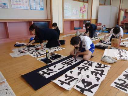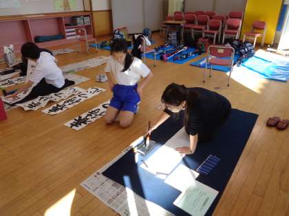 書き初め大会に向けて練習を行っています。講師の先生がアドバイスしてくださっているのをしっかりと聞き、活動しています。