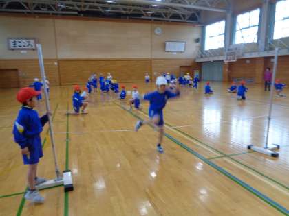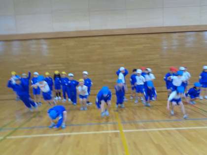 今日は、いろいろな跳び方に取り組みました。腕を大きく振ったり、足を高く上げたりすることで、より遠くに跳ぶことを意識して取り組んでいました。