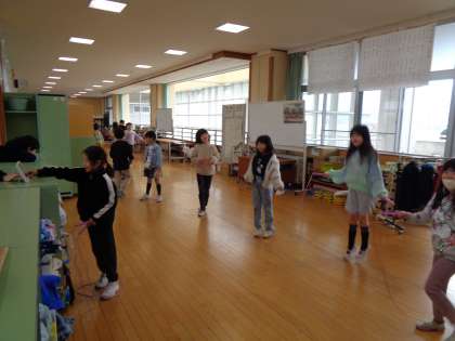休み時間には、なわとび運動に取り組む子が増えてきています。教室前のスペースでは、タイマーを使ってどれだけ長く跳ぶことができるかを計測しました。今日の最高記録は5分でした。毎日練習を続けて記録を伸ばしていきます。
