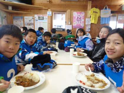 今日は、待ちに待ったスキー学習でした。スキーもご飯も思いっきりの笑顔で楽しんでいました。