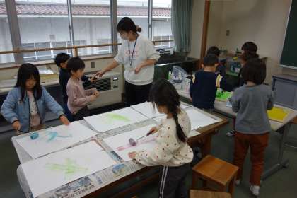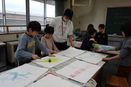 版画の学習の様子です。ローラーで着色を楽しみました。