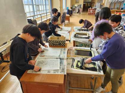 この後、刷った紙の裏から水彩で色を付けていく予定です。