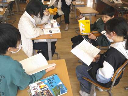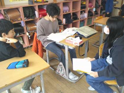 「長く続いた戦争と人々のくらし」について、一人一人が調べまとめたことを、グループで紹介し合いました。日本人だけでなく、外国の人々にも心を寄せて、自分の思いを伝え合いました。