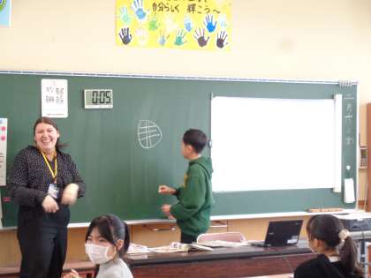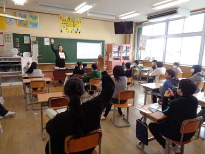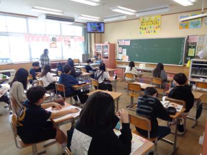 小学校の思い出を外国語で言えるように練習しています。ALTとのコミュニケーションを楽しみながら学習を進めています。