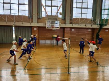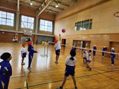 全ての相手との試合が終わりました。どのチームも、最初と比べてとても上達しました。試合後には、キャッチバレーボールの学習全体を通しての振り返りを行いました。
