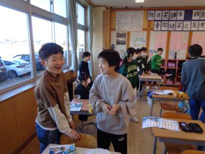 「I can 〜. I am good at 〜.」の表現を使って、自分ができることや得意なことをALTや友達と伝え合いました。コミュニケーションを楽しみました。