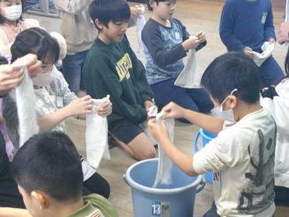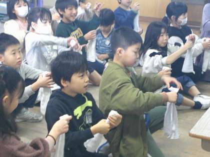 「ダスキン キレイのたねまき教室」で、そうじが大切なわけや、ほうきや雑巾の正しい使い方等を教えて頂きました。今日のそうじの時間には、教えてもらったことを意識して取り組んでいました。