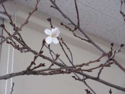 ここ何日間か温かい日が続いていたからでしょうか?けなげに咲く一輪の桜に、来たるべき春を感じながらも、卒業式を思い、寂しいような気持ちもこみ上げてきました。