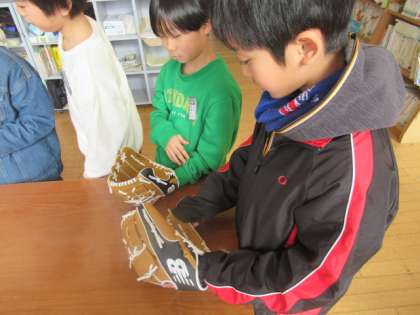 3年生 大谷翔平選手から頂いたグローブをはめてみよう