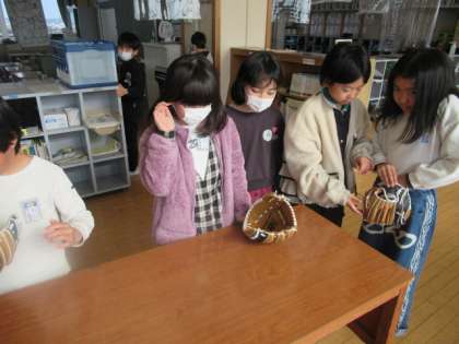 今日は先日、小学校に届いた大谷翔平選手から頂いたグローブを見たり、手にはめたりしました。初めてはめた女の子やグローブをはめて投げる格好をしてみた男の子もみんなとてもうれしそうでした。