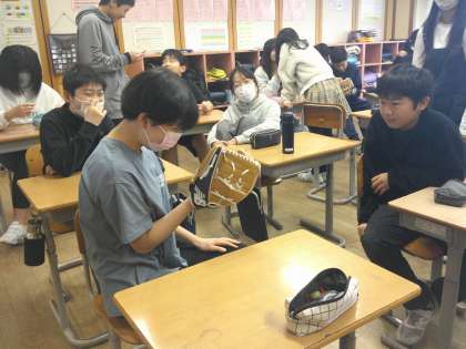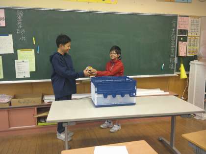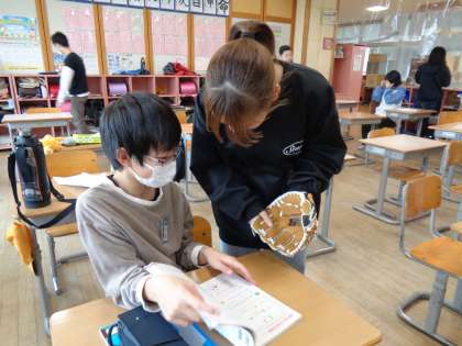 先日全校で行った野球グローブ贈呈式。今日は6年生それぞれの教室でのお披露目となりました。大切に扱いながらうれしそうな子供たちでした。