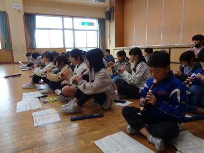 学年で音楽をしました。「威風堂々」を演奏しました。合奏の経験が少ない中、仲間と音を合わせようと必死に綺麗な音色を響かせようとしていました。