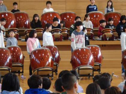 和太鼓発表会では、今までの和太鼓練習の成果を発表しました。6年生さんとの最後の和太鼓演奏ということで、今まで教えてもらったことへの感謝の気持ちをもちながら、和太鼓発表に取り組みました。