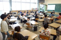 卒業を祝う会の前に、6年生にメダルを届けました。6年生は嬉しそうに首にかけ、祝う会に参加してくれました。