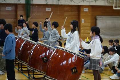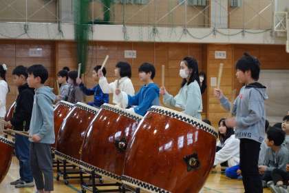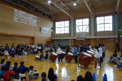 卒業を祝う会で、感謝の気持ちを込めて「大地」「大祭」を演奏しました。