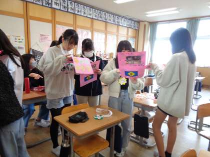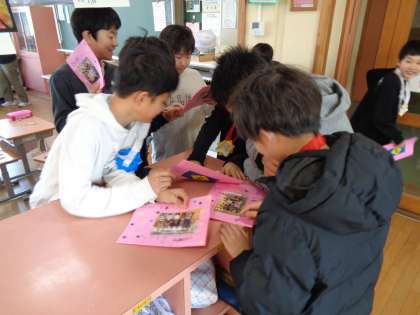 卒業を祝う会が終わり教室に戻ると、子供たちはメッセージカードに釘付けでした。また、もらった首飾りを一日中付けている子供、首にかけたまま帰る子供もたくさんいました。とてもうれしかったようです。下級生のみんな、どうもありがとう!