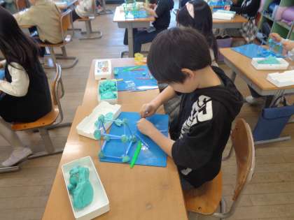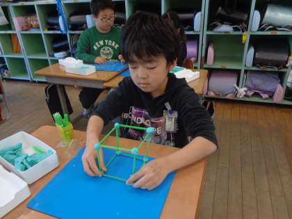 2年生 算数科「ぼうとねんど土玉で、はこの形を作ろう」