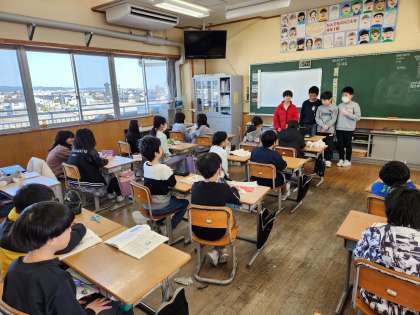 アンケート結果をスクリーンに映し出し、結果から考えたことを上手に伝えていました。