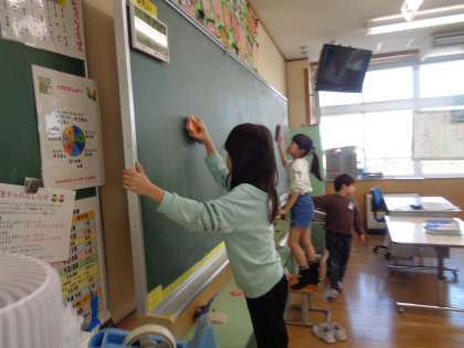 2年生も残すところ、あとわずかになりました。今まで使ってきた教室や棚、廊下まで真剣に掃除する姿が見られました。自分の仕事が終わっても他にやることはないかと探して取り組んでいました。