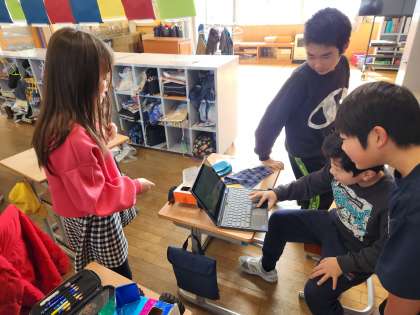友達から聞いた感想はクロームブックで記録し、全員が全員の感想をリアルタイムで知ることができるようにしました。