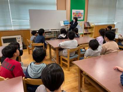 今日は、東日本大震災の読み聞かせをしていただきました。真剣な表情で聞き入っていました。