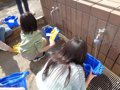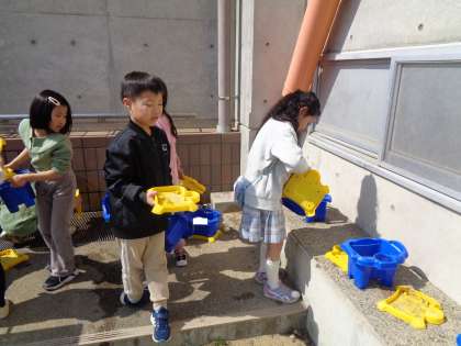 今日は、あさがおの鉢の掃除を行いました。中の土を捨て、鉢を洗った後、何もなくなった鉢を見て「また来年も育てたいな。」の声が聞かれました。もうすぐ1年生が終わることを意識して、来年への準備を進めている子供たちです。