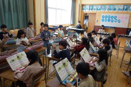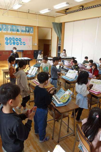今日は、いろいろな楽器を使って、合奏にチャレンジ。初めてでしたが、上手にできました。