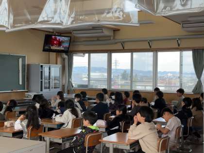 新1年生を迎える入学式にリモートで参加しました。実際の式と同じように起立したり、校歌を歌ったりしました。