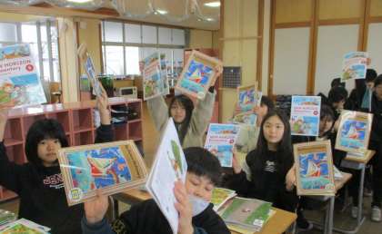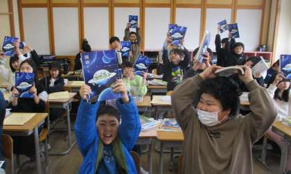 新しい教科書をもらってやるきまんまんの5年生です。