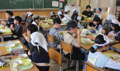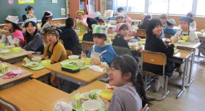 給食の準備を素早く終わらせて、みんなで楽しく給食を食べました。