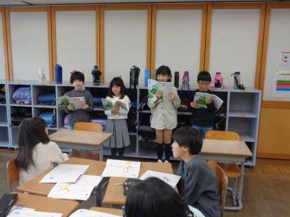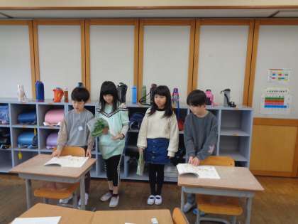 音読発表をしました。グループによって工夫の仕方が違っていて楽しい発表会となりました。