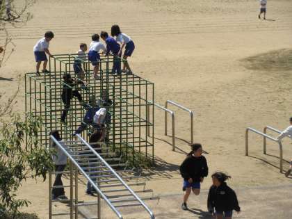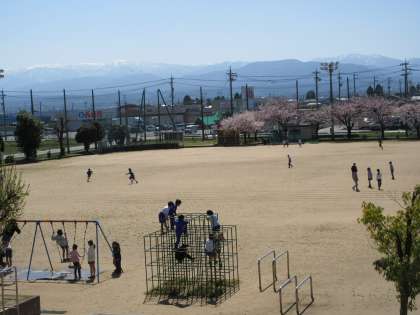 多くの子供たちがグラウンドに出て、楽しい時間を過ごしていました。