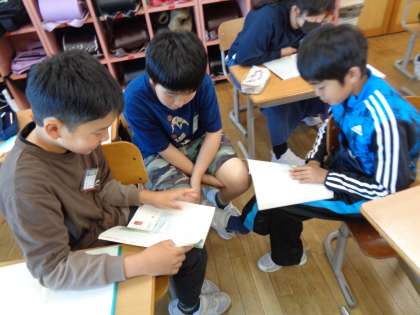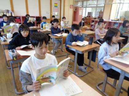 今日は、詩を音読しました。詩の中の言葉や表現から詩の特徴を捉え、どのように音読すればよいかを真剣に考える姿が見られました。