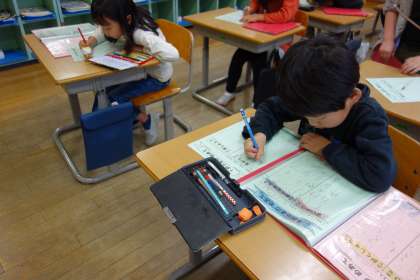 「学習」と「生活」の目当てを立てました。キャリアパスポートを見て、1年生の目当てや達成状況を確かめながら考えました。