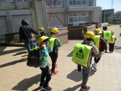 1年生が笑顔で手を振って下校しています。おうちでたくさんお話してくださいね。