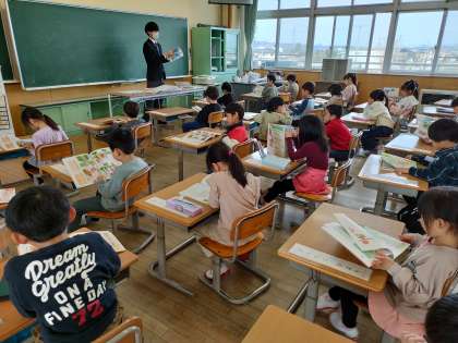 1年生は、これからどんな勉強が始まるのか楽しみにしています。今日は、明日から始まる道徳の教科書を覗いてみました。いろいろなお話があり、わくわくしています。