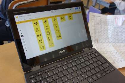 濁音の入力にもチャレンジ中です。言葉集めを楽しみました。