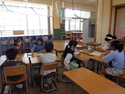今日は、係のメンバーでめあてや仕事を話し合い、ポスターを書きました。