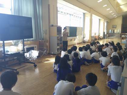 今日の朝は、学年全員で本の読み聞かせを聴きました。