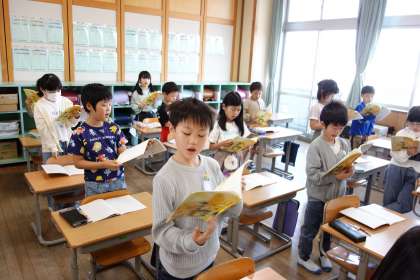 国語科の学習の様子です。「ふきのとう」を読んでいます。