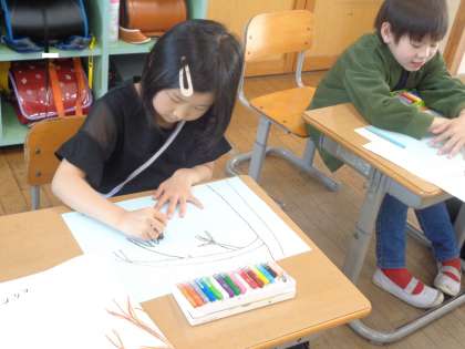 昨日の図工に続き、桜の木を描きました。昨日の練習を見ながら、付け足したり、新しい工夫を考えたりして、素敵な木を完成させることができました。明日はいよいよ桜の花びらを描いていきます。
