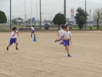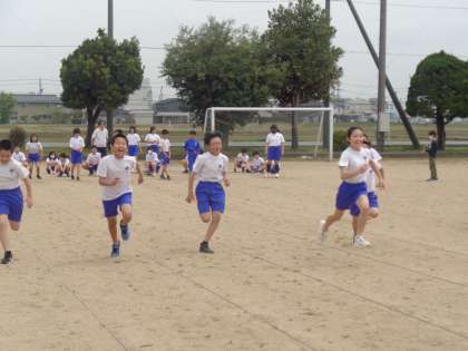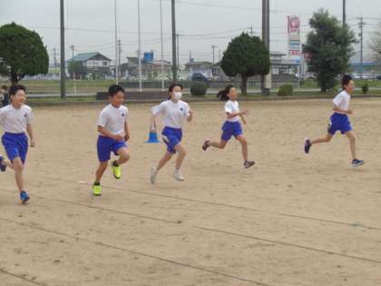 今日の6年生は、80m走を行いました。フォームについて学び、それを生かしながら走ったことで、いつもより、軽やかに走れたことを実感することができました。