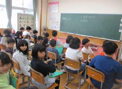 総合的な学習の時間での話合いです。この日は1・2組合同で話合い活動をしました。1年間の見通しを立てました。