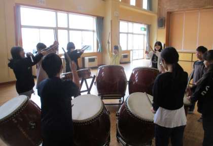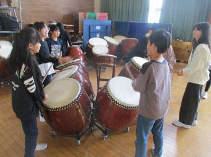 朝の時間に、自主的に集まって太鼓の練習をしています。 このあとも楽しみです。
