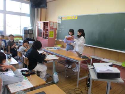 クイズカンパニーがクイズを出しています。 学級活動の一場面でした。