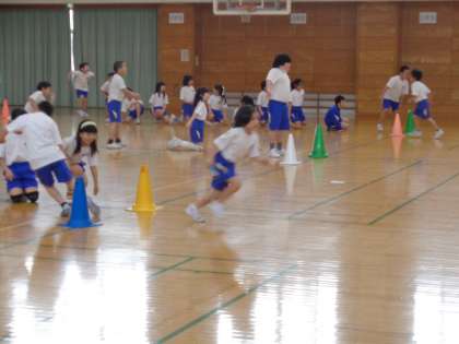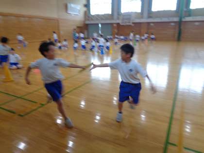 リレーの練習をしました。今日は、前回よりもレベルアップを目指し、走りながらバトンを受けることを意識して取り組みました。