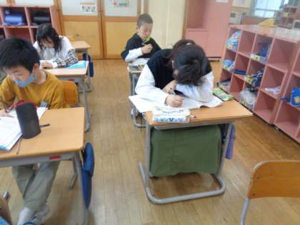 今まで学んできた、平行四辺形やひし形などが線対称な図形なのか、点対称な図形なのかを調べました。線対称は折ったらぴったり重なり、点対称は180°回転させると重なることに注目して考えています。