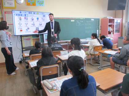 ALTの先生の発音をまねして、正しく発音できるように練習を重ねています。