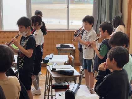 今日から音楽科の学習がスタートしました。元気よく歌を歌ったり、リコーダーを演奏したりしました。