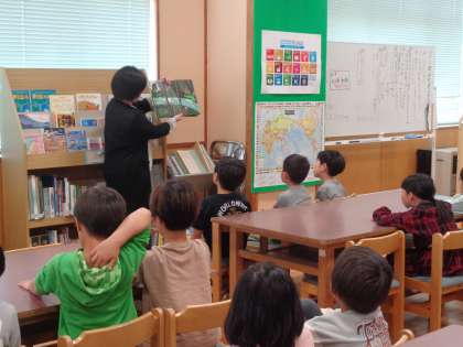 図書館オリエンテーションでは、改めて図書室の利用の仕方について確認をし、本の貸し出しを行いました。